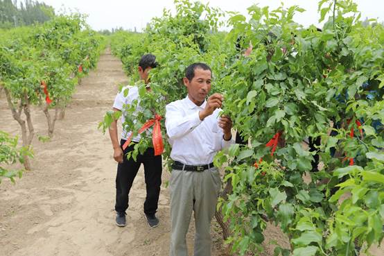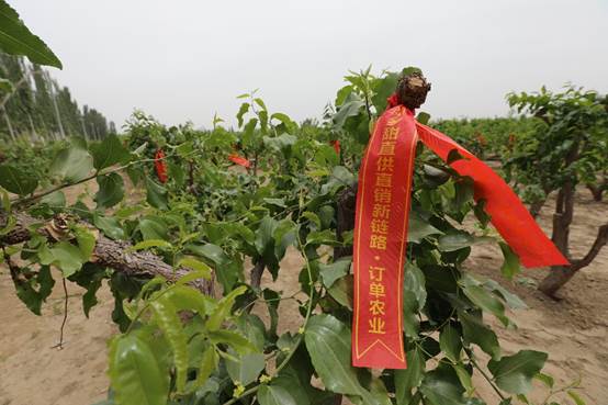 图说:当地农户为枣树绑上红丝带,喜迎订单农业