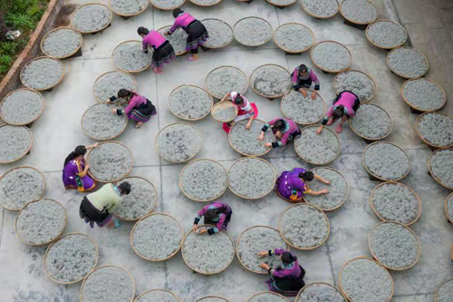 毛坝乡河坝溪莓茶合作社社员在晾晒莓茶