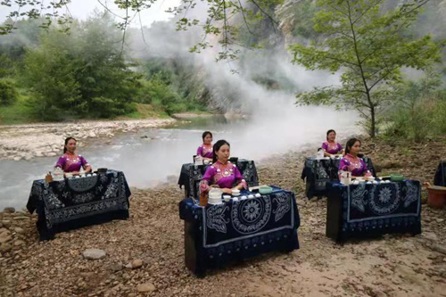 毛坝乡莓茶茶艺表演队在表演茶艺