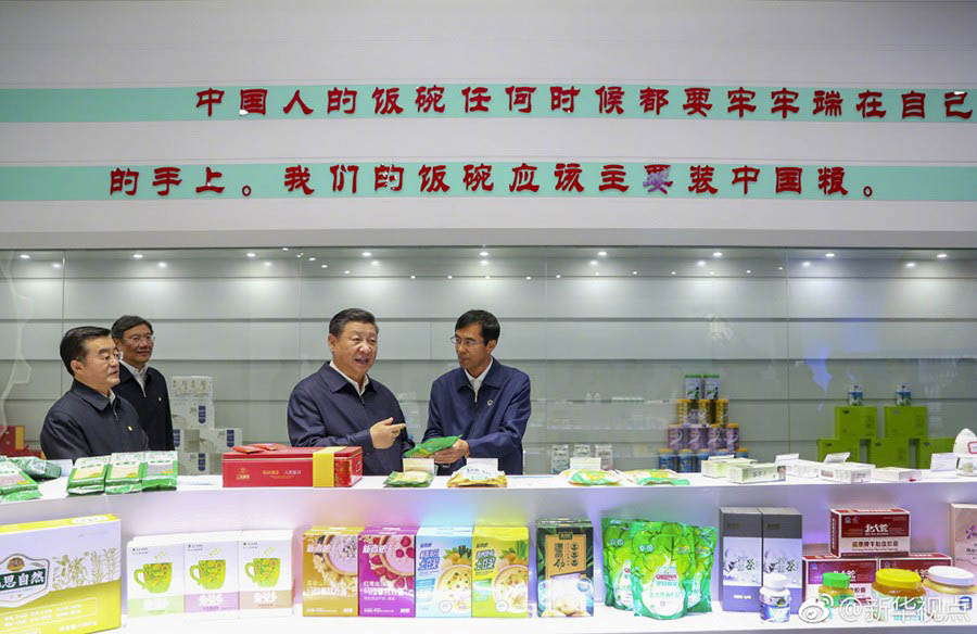2018年9月25日,习近平在黑龙江农垦建三江管理局考察粮食生产和收获情况时,意味深长地说:“中国粮食,中国饭碗。”(资料图)