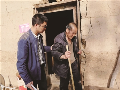 图为高紫阳搀扶行动不便的村民。
