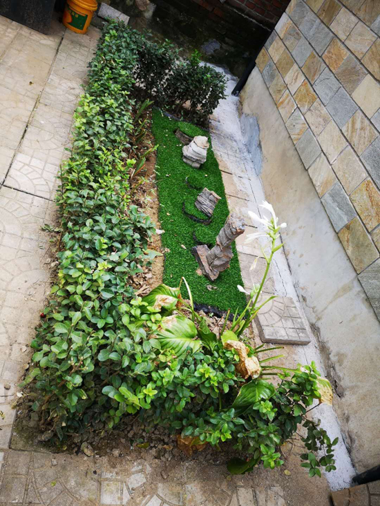 “那这个新型厕所的化粪池在哪里呢?”朱永升领着记者来到了院子里的一片绿地,指着下面说:“就在这下面,叫什么一体式四格处理罐,直接挖个坑埋进去的。用上快1年了还没清过,说是2、3年清一回。底下还有个出水口,处理过的废水可以当肥料,直接浇旁边的花草了。”