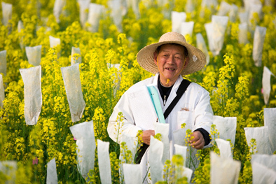 傅廷栋是新中国第一名油菜遗传育种专业方向的研究生,年过八旬,他依然围着油菜田地转,每年从东南沿海到长江流域、西北地区,一路追随油菜花开的脚步。他专注杂交油菜育种60余年,带领团队培育近60个油菜品种,被称为“世界杂交油菜之父”。