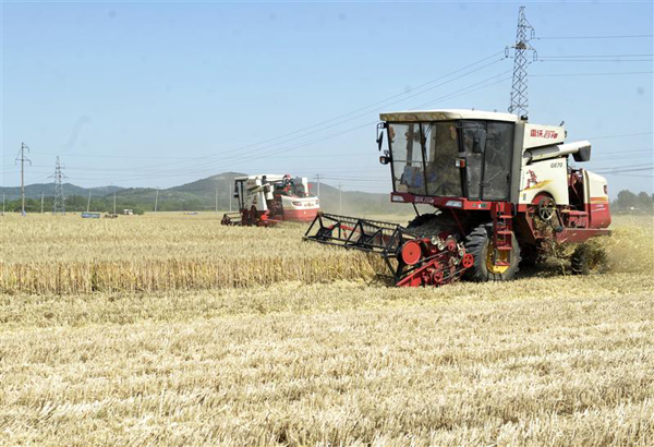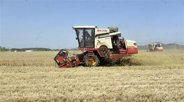 5月下旬的豫南,到处是农人们在田间忙碌的身影,随着农业机械化率的提升,如今的夏收不像以前那样忙碌紧张。“以前麦季都是人工收割,加上捆、拉、打等环节,前前后后算起来要一个月,而且产量不高,现在种地几乎全部都用收割机收了,又快又省工,亩产都在1000斤左右,用不了一周小麦就能全部收完了。”在三里河乡中店村的晾晒场上,正在晾晒小麦的村民杨和平捧着丰收的小麦乐得合不拢嘴。