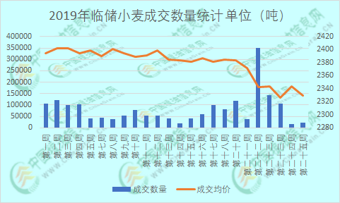 陈麦逐渐退市,拍卖跌入谷底。由于今年新麦质量好,且价格相对于陈麦偏低,性价比更高,制粉企业为了控制成本,更倾向于使用新麦,对陈麦参拍热度不高。6月19日,国家最低收购价小麦计划销售300.64万吨,实际成交2.34万吨,尽管高于上期的1.73万吨,但明显低于上月同期的35.11万吨,整体成交率仅为0.77%,临储小麦拍卖成交基本跌入谷底(如图所示)。预计进入7月份,新麦使用比例进一步提高,陈麦成交情况应该还是在低位徘徊,对新麦价格不会有什么影响。