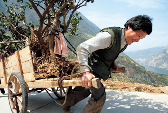规定的搬迁时间一天天逼近,等不起。向永兴把脐橙树一棵棵连根带土挖出,放在板车上。他嘱咐妻子多挖点土。