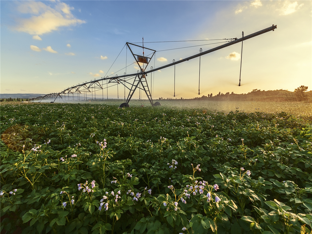 喷灌作业中的千亩马铃薯基地