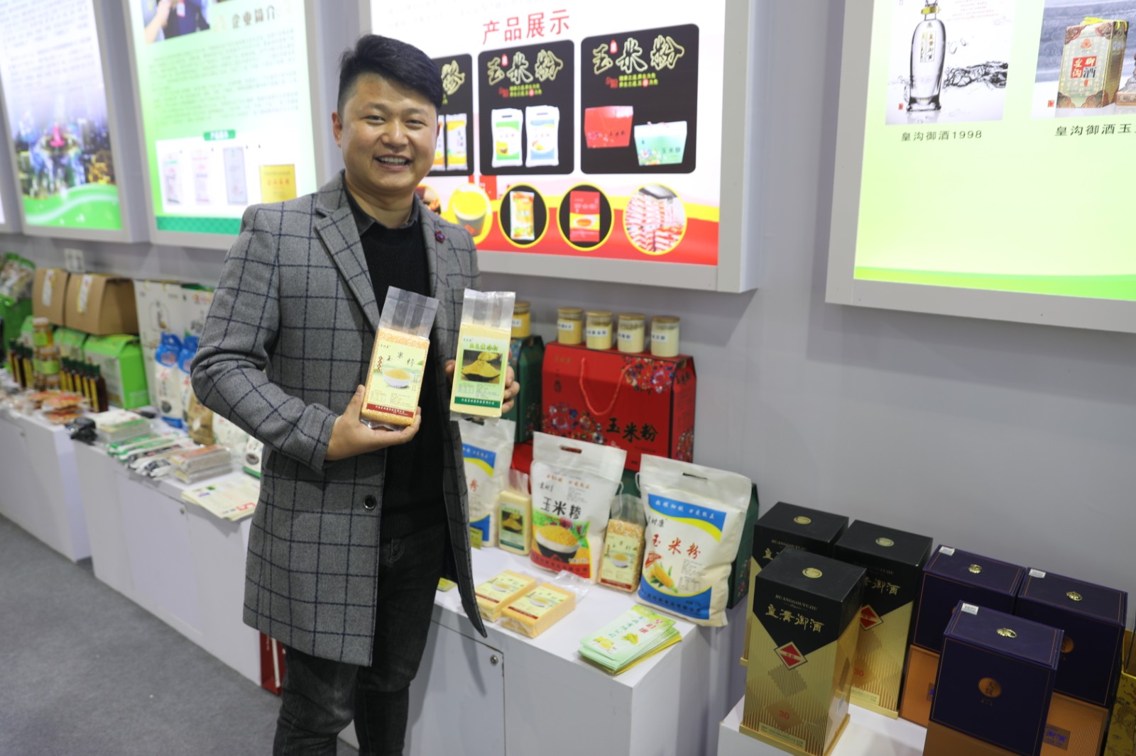 河南皇时康食品有限公司负责人正在推介其生产的玉米糁和玉米粉