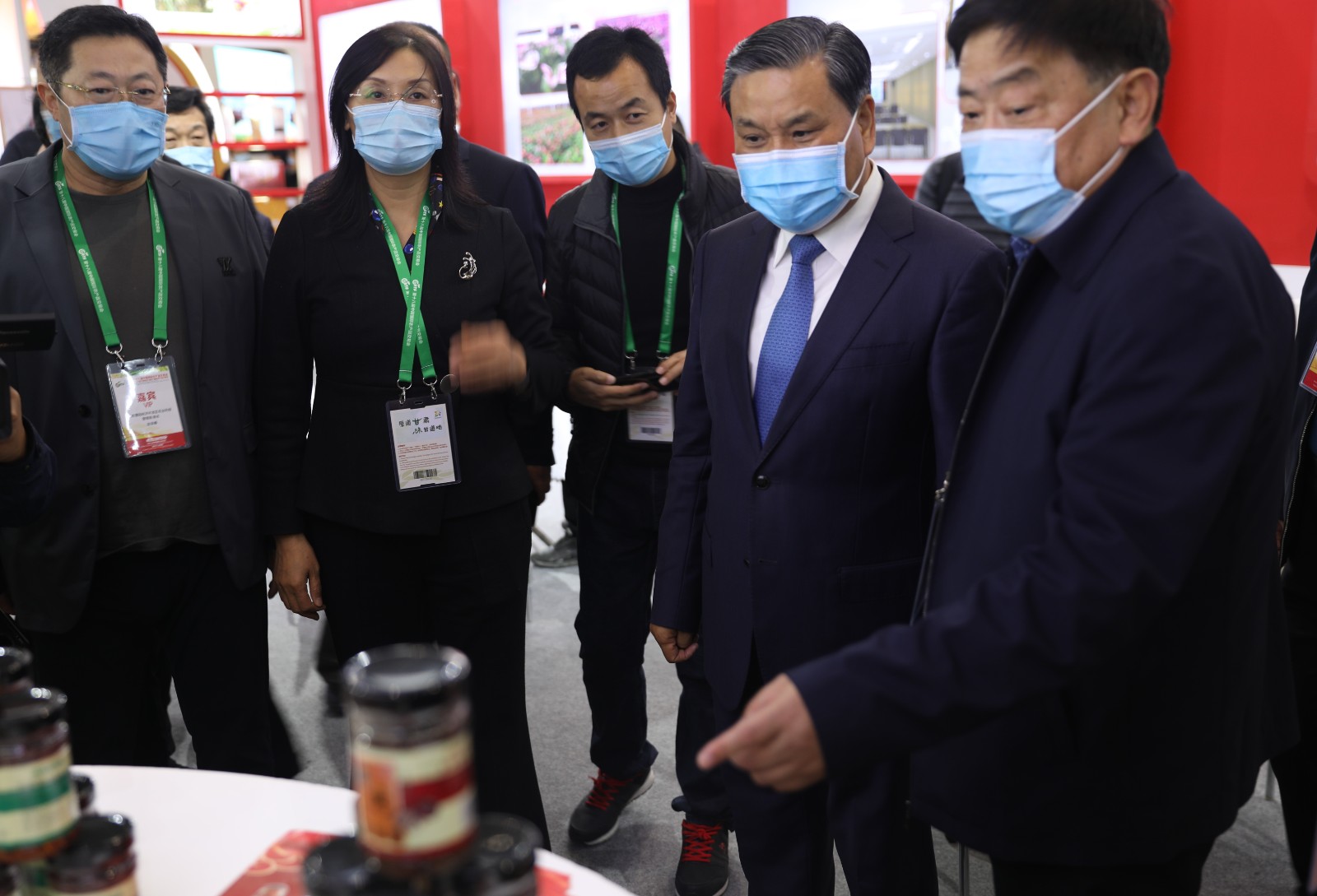 11月27日,第十八届中国国际农产品交易会在重庆市国际博览中心开幕。河南290家参展企业携粮油、畜禽、水产、果蔬、茶叶、食用菌、中药材、调味品等8大类1200余种农产品集中亮相展会。河南省人民政府副省长武国定,河南省委农办主任、省农业农村厅厅长申延平出席开幕式并到展区巡展。