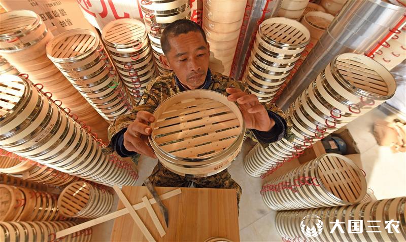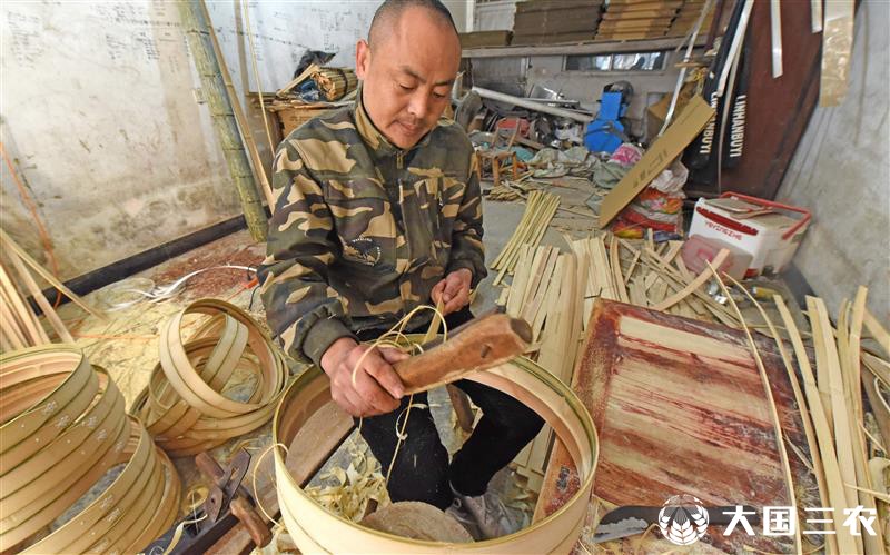 12月18日,浙江省台州市仙居县白塔镇一家蒸龙加工作坊的农民正在制作蒸笼。