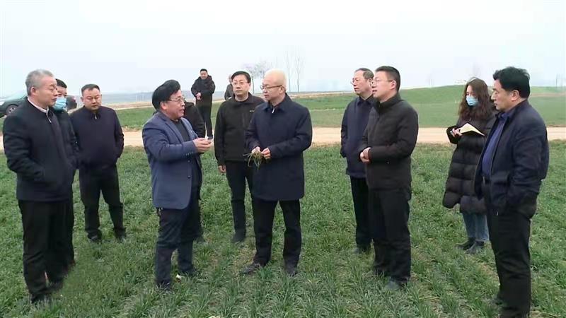 县委书记李东岭等人到田间查看小麦生长情况