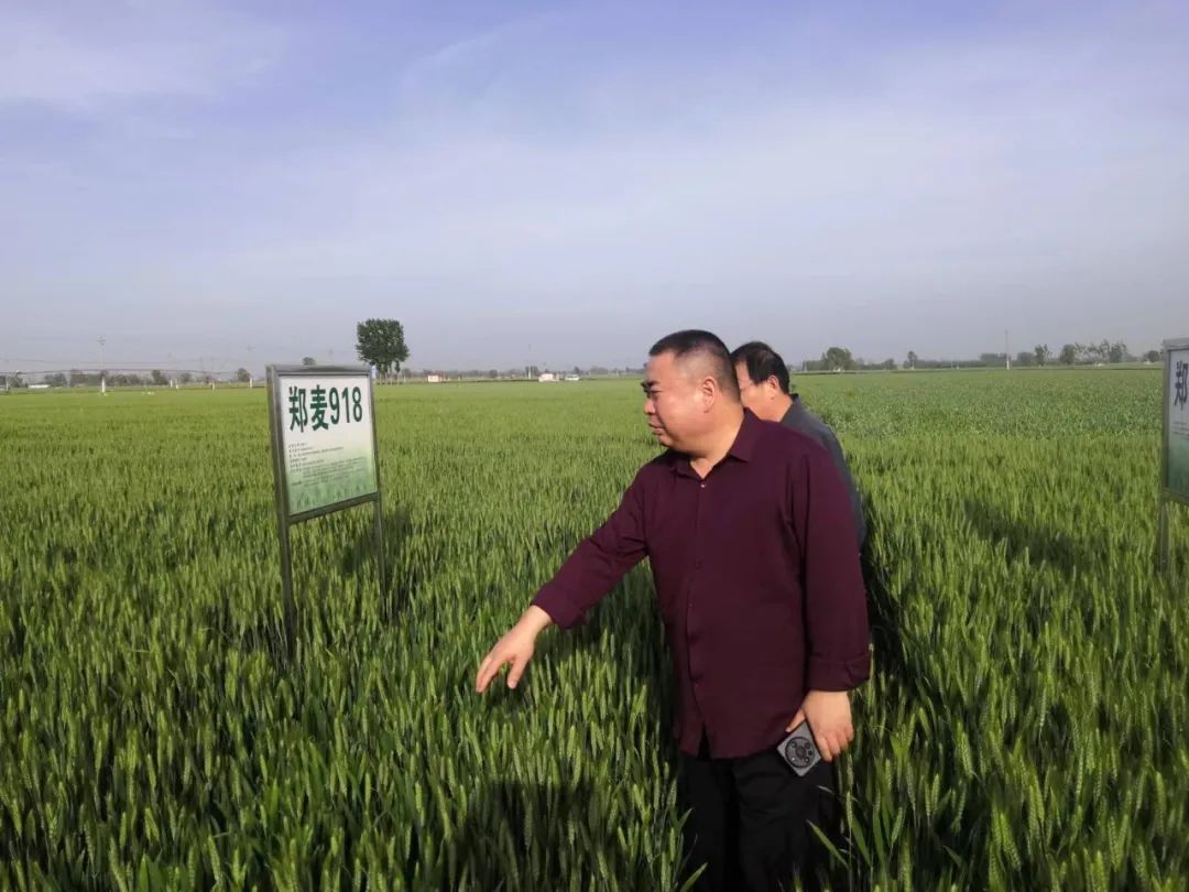 4月28日,河南省延津县农业农村局种子管理站站长李生堂在僧固乡沙庄村察看“郑麦918”品种的田间表现。