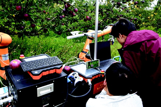 近日,农业农村部苹果全程机械化科研基地和西北农林科技大学机械与电子工程学院杨福增教授团队联合研发的苹果双臂采摘机器人,成功在麦积区泽裕果品农民专业合作社的苹果种植基地进行了首次花牛苹果实地采摘测试。