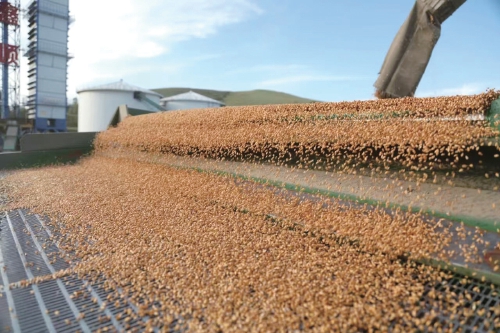 免渡河农牧场收获的小麦正在进行筛选,等待烘干后入仓。