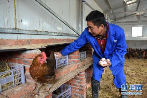 11月25日,在江西省崇仁县巴山镇吕坊村,村民周辉孙在收麻鸡蛋。