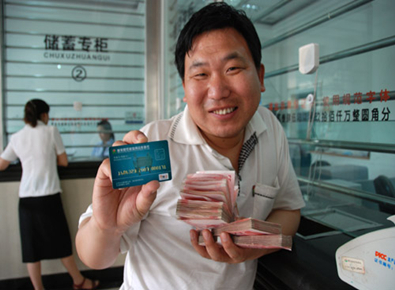 怀揣一张银行卡,风风火火走天下。基础设施建设好,农村金融开新花。