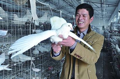 2001年初,他到威海收购辣椒,偶然间看到有家大型规模化养鸽子企业,当时就萌发养殖鸽子的念头。刚开始父母觉得风险大并不支持他的想法,但妻子却非常支持他,于是抱着试试看的心理,购回600对“美国白羽王”和“泰森”种苗,由于缺乏养殖经验,养殖的鸽子生病了不少,好在及时请教专家,到了年底一算账,鸽子数量增加了不少,还小赚了一笔,让他对养鸽信心倍增。