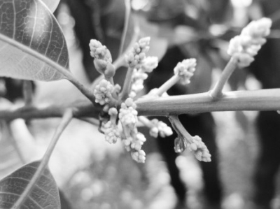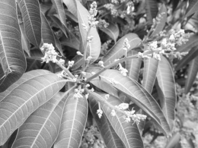 具体方法是在1月中下旬、2月上旬和2月中下旬分批进行摘花,其中1月摘花时可连顶端密节芽一起剪除,可推迟花期在20天以上;2月上旬摘花时可自花序基部摘除整个花序,2月中下旬摘花时留花序基部1~2厘米(或保留2~3个分枝),将花序顶部摘除,摘花后喷施高钾叶面肥提高再生花质量。如此通过分批摘花即可使芒果花期推迟到3月中下旬至4月初开放,且拉长整个果园开花时间,防止因花期过于集中而一旦遭遇短时不良天气造成大面积减产。