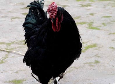 吴华:这是旧院黑鸡,它是双冠,重冠,羽毛乌黑发亮,还发蓝,发绿,还有点绿色,你看,证明这只鸡很健康,很生态,很健康。脊椎骨还要比其他鸡多一块,体壮,野性比较强。