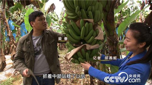梁春:这一棵树上我们留8把香蕉,如果留得再多,上面得已经成熟,下面得还没有长到足够肥。