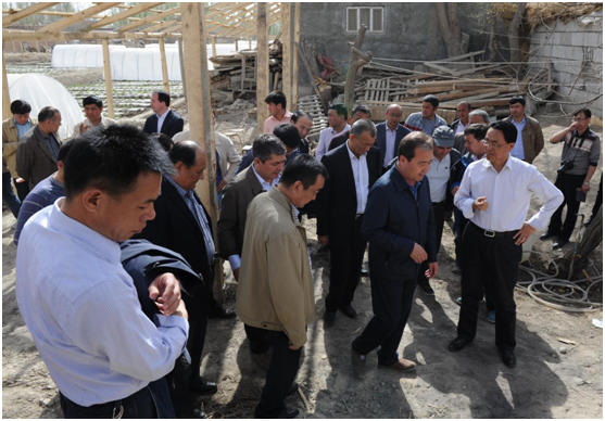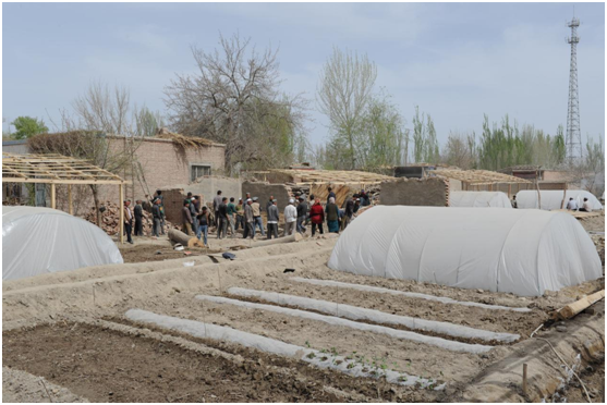 图为4月9日,市阿依库勒镇阔纳巴扎村召开“发展庭院经济,推进精准扶贫”现场会。该村是自治区级贫困村,也是全市扶贫攻坚整村推进重点村。