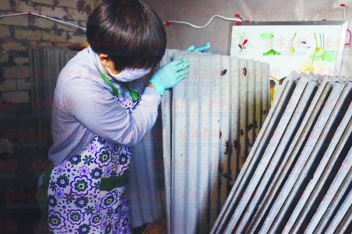 4月19日,记者来到奎山街道李秀花家里,记者看到她系着围裙,留着一头短发,十分秀气,很难和养蟑螂这件事情联系在一起。她带着记者到屋里参观了美洲大蠊,在一间不到10平米的屋里一片一片的石棉瓦整齐有序地摆放在架子上,而美洲大蠊就是生活在其中。而上面摆放了美洲大蠊的食物,记者注意到有玉米面,还有鱼粉和香蕉。