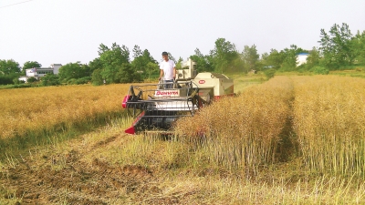 连日来,安徽省怀宁县种粮大户趁着晴好天气抓紧时间抢收油菜。今年油菜收割中,种粮大户们大多采用了机械收割。“人工收割油菜效率低,劳动强度大,收割后的油菜秸秆不好处理。”怀宁县小市镇求雨村种粮大户夏效俭深有感触地说,“机械收割油菜省工省时又省力,脱粒干净,油菜损失率小,粉碎后的秸秆直接还田,方便省事,节能又环保。”