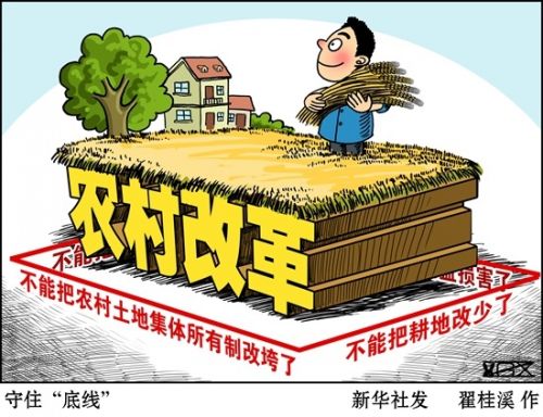 中国要强农业必须强,中国要美农村必须美,中国要富农民必须富。加快农村发展,关键是要紧紧扭住发展现代农业、增加农民收入、建设社会主义新农村三大任务,处理好农民和土地的关系。各地在深化农村改革的过程中,必须着力保障各项法规、政策不打折扣地落实,牢牢守住“四个不能”底线,促进农业基础稳固、农村和谐稳定、农民安居乐业。