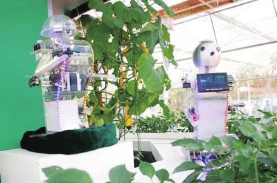在“寿光蔬菜博览会”上,由寿光科技人员自主研发的智能机器人穿梭于菜架中,采摘、管理动作精准流畅,让游客在零距离接触中感受智能化种植带来的便捷和高效。