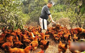 雁江丰裕镇一向以柑橘为主要经济作物,但最近几个月却与“青脚麻鸡”扯上了关系。从2012年12月至今年3月,短短几个月时间获得了极好的收效。目前丰裕镇将“林下养鸡”作为重点项目推广,主要试点插旗村已经有十余户农户搞起了“林下养鸡”项目,农户养殖总量已经破万只。丰裕畜牧站叶站长意味深长地说:“柑橘要实现全生态种植,还得靠这些青脚麻鸡。”