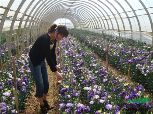 在该合作社的包装车间,花桶中插满了五彩缤纷的洋桔梗鲜花,刘丽珍手捧着一把叶色嫩绿、花色娇艳的洋桔梗切花告诉记者:“这是我们今年试种筛选并将主推的洋桔梗新品种,不仅品质高,而且质量好,花型也非常好瞧。像这样优秀的洋桔梗主栽品种,目前我们有20多个,都是来自荷兰、日本和美国的品种。”