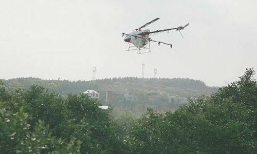 有了目标后,黄运东开始去各地考察用无人机打药可不可行。他咨询了很多用无人机打药的植保队,还走访了很多无人机厂商,有多旋翼的、单旋翼的,经过深入的考察,了解多旋翼打水稻等低矮农作物可行,打果树要用单旋翼药雾才能穿透下去。单旋翼是纯净向下压的,能有效的把药打到作物的上层、中层、下层,叶子的正面和背面,从而保证药效,他觉得单旋翼无人机更适合打冰糖橙。经过2个多月的考察,最终黄运东向天鹰兄弟购买了单旋翼的植保无人机,在家乡永兴县组建了12个人、4架飞机的飞防队。