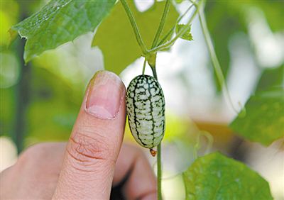 据《新闻晨报》报道,这个夏天,吃惯了普通的8424,尝过小皇冠或是双色冰淇林西瓜,你是否吃过拇指般大小的西瓜呢?日前,金山区山阳镇高佬庄果蔬专业合作社成功种植了“拇指西瓜”。这种瓜的大小如同圣女果,内瓤为青绿色,口感微甜,迷你又可爱。据合作社的负责人介绍,“拇指西瓜”是首次在上海种植,不过它实际上并非西瓜,而是源自南美的一种水果——“佩普基诺”。经过3年的栽培,终于在上海成功种植。因其奇独特的外貌和口味,现在售价不菲。