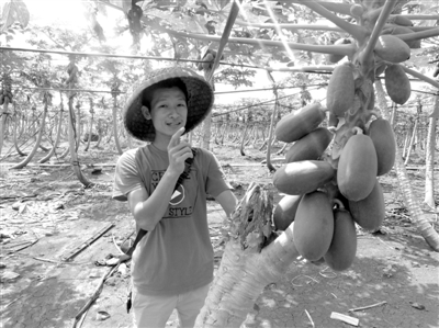 目前,他生产出的木瓜通过电商微商销售平台不愁卖,专销省内外,产品供不应求,价格也“吃香”,每公斤卖到8元。