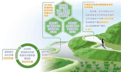 万物土中生,有土斯有粮。耕地作为自然生态系统的重要一环,必须实行最严格的保护,让“负重”的耕地歇一歇。党的十九大报告中提出要扩大轮作休耕试点。今年《政府工作报告》也明确,耕地轮作休耕制度试点面积增加到3000万亩。