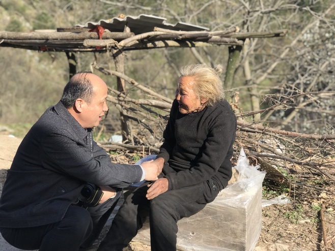 在坎子山村,像熊耀喜婆婆这样与中国太保形成结队帮扶的贫困户共有17户。位于湖北十堰市郧西县的坎子山村地处秦楚交界的大梁山上,是湖北最偏远的少数民族村,从郧西县城到村里,开车要走4个小时的山路。这个坐落在绝壁上的村落,平均海拔1500米,是国家级重点贫困村。村党支部书记魏登殿,是十八大、十九大代表,40年如一日,带领全村群众,让曾经无地、无水、无电、无路、无房的“五无”村有了翻天覆地的变化。