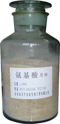 氨酸),含量为25%,本氨基酸粉总含量不低于50%,本品用于饲料和农业,成本低廉,无毒副作用,纯属绿色营养。本品外观为黄色粉末,具有易溶于水、吸潮性强的特点。