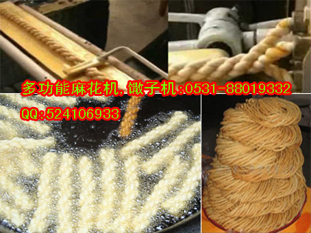 该机可生产大、中、小、粗、细、长短、多股型状任选的各种麻花,比手工制作可提高十倍以上,新款多功能麻花馓子多用机 售价:3800元(可以做馓子也可以做麻花)。